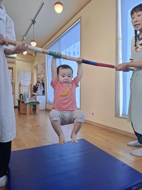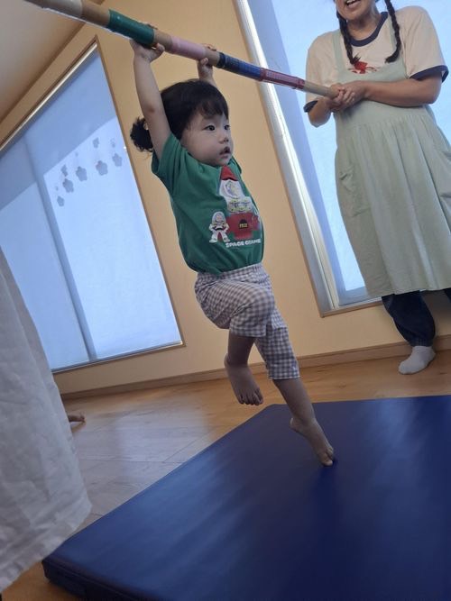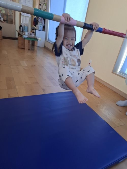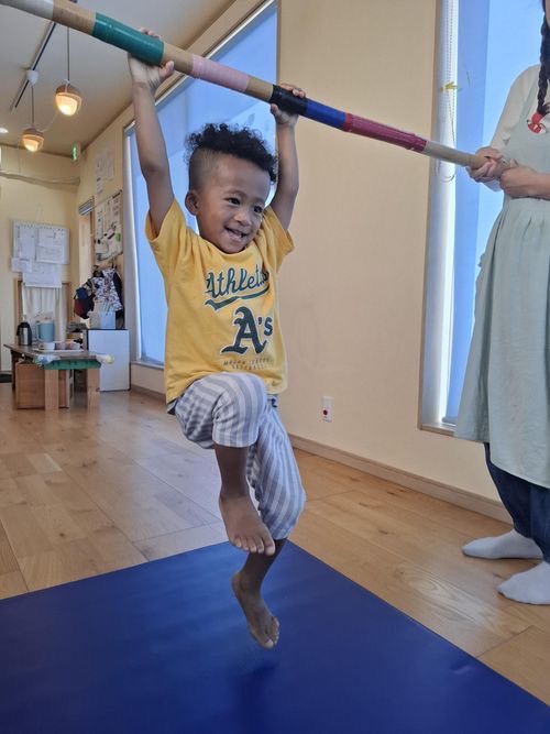 この日はぶら下がり運動やバランスマットで