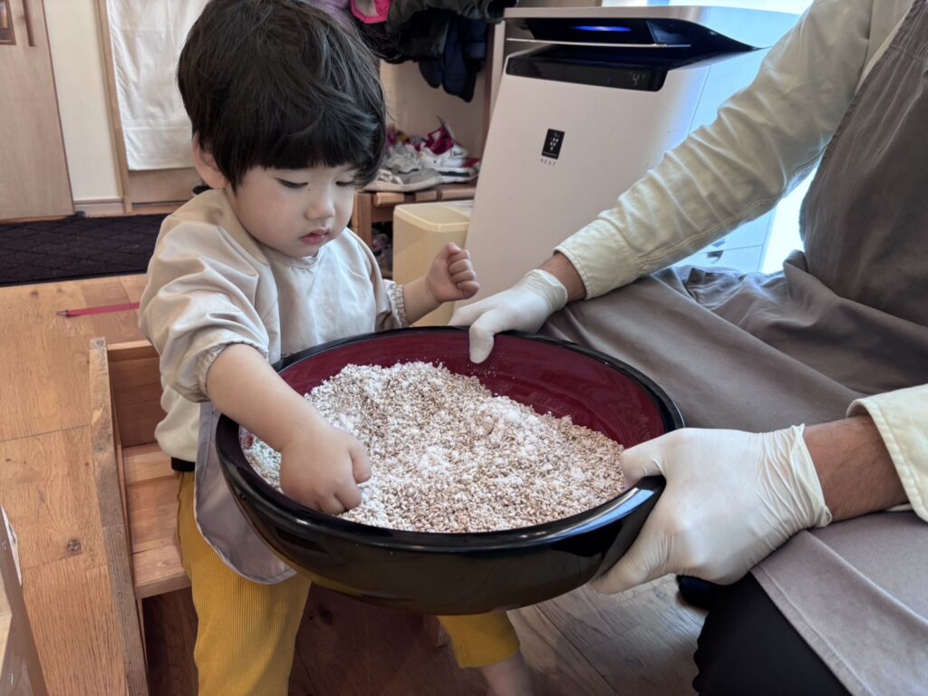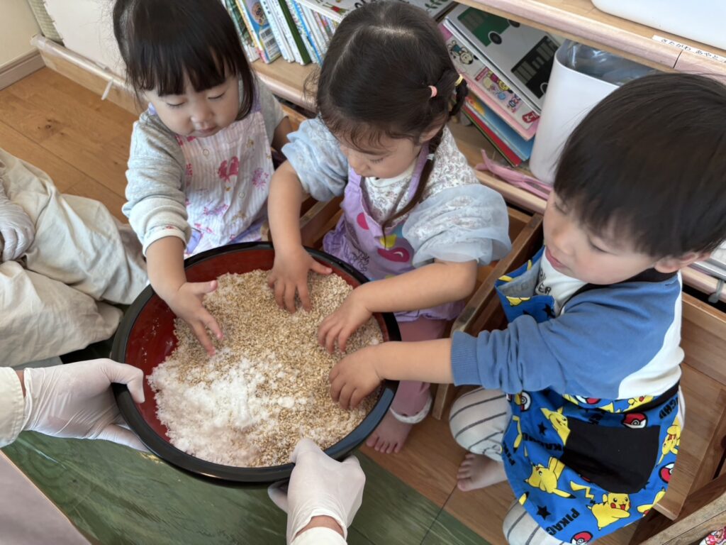 👨🏻🍳「塩と麹をまぜるよ〜」