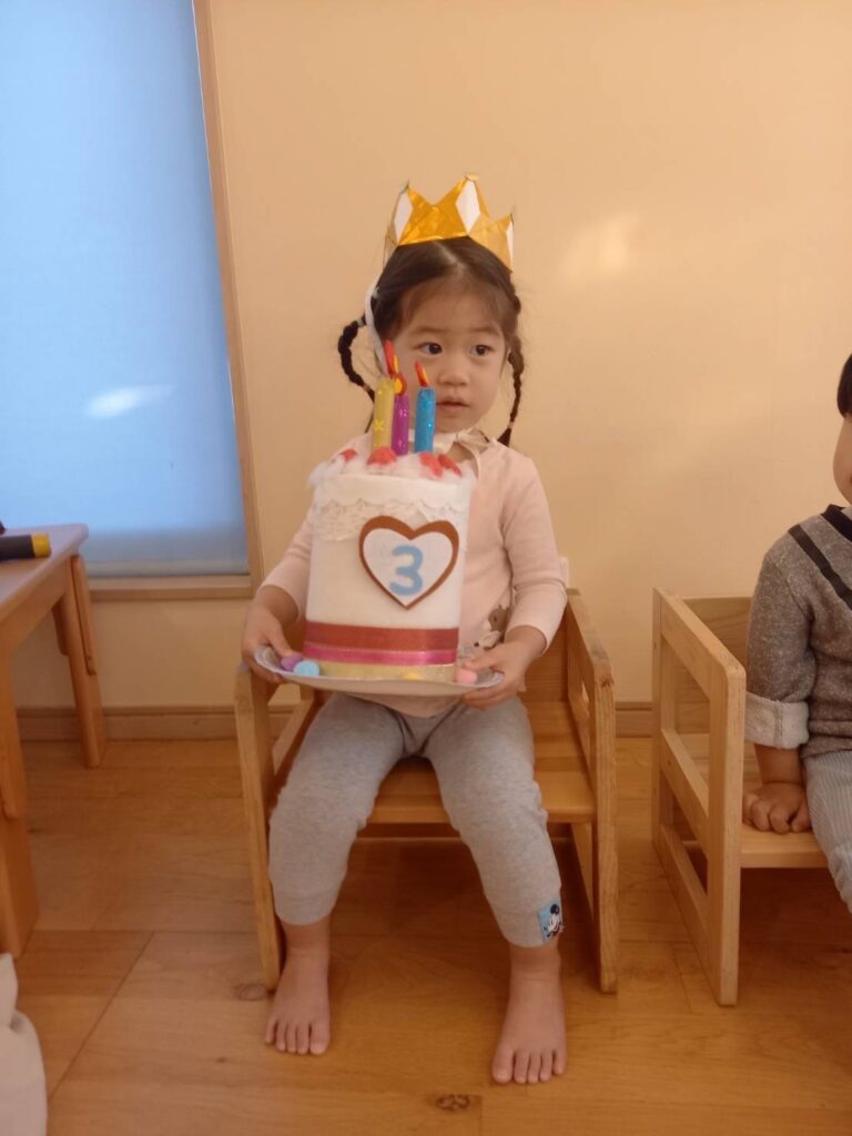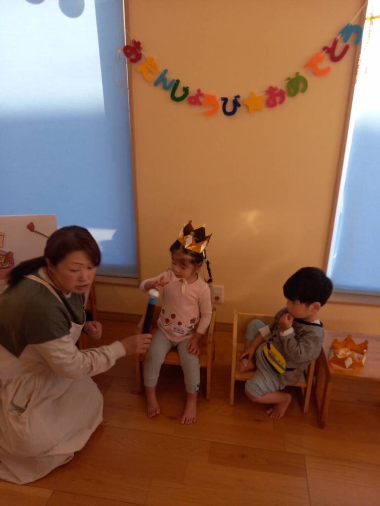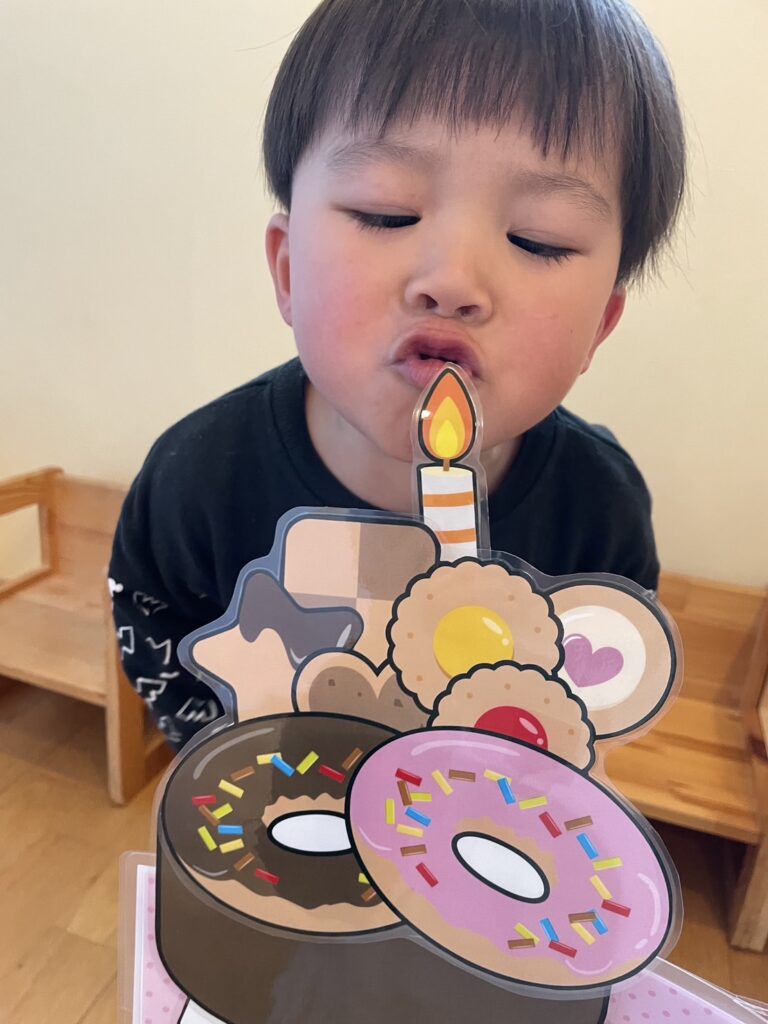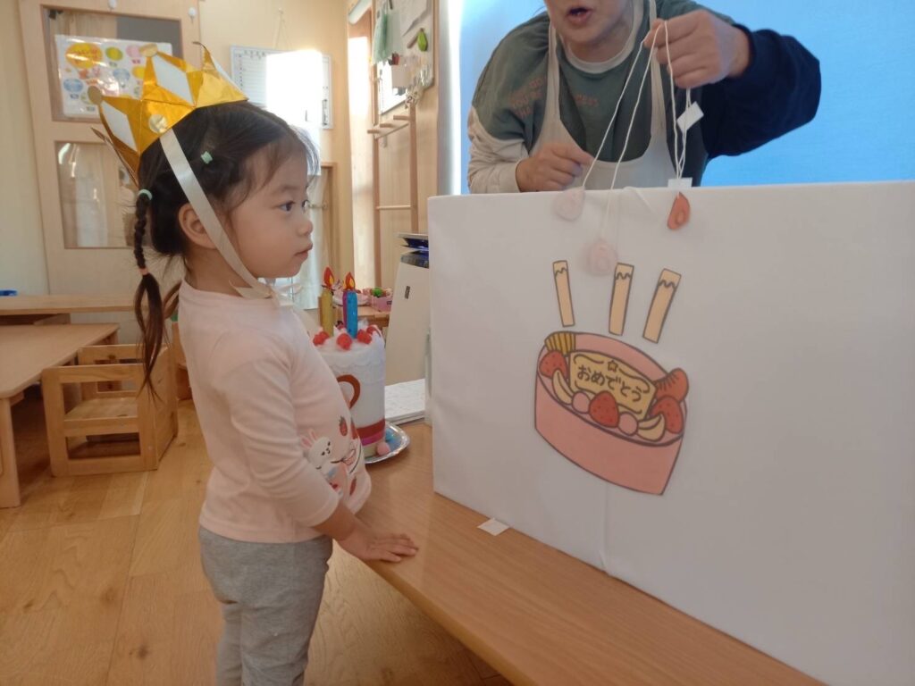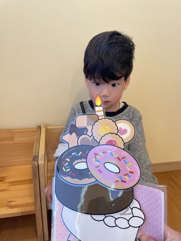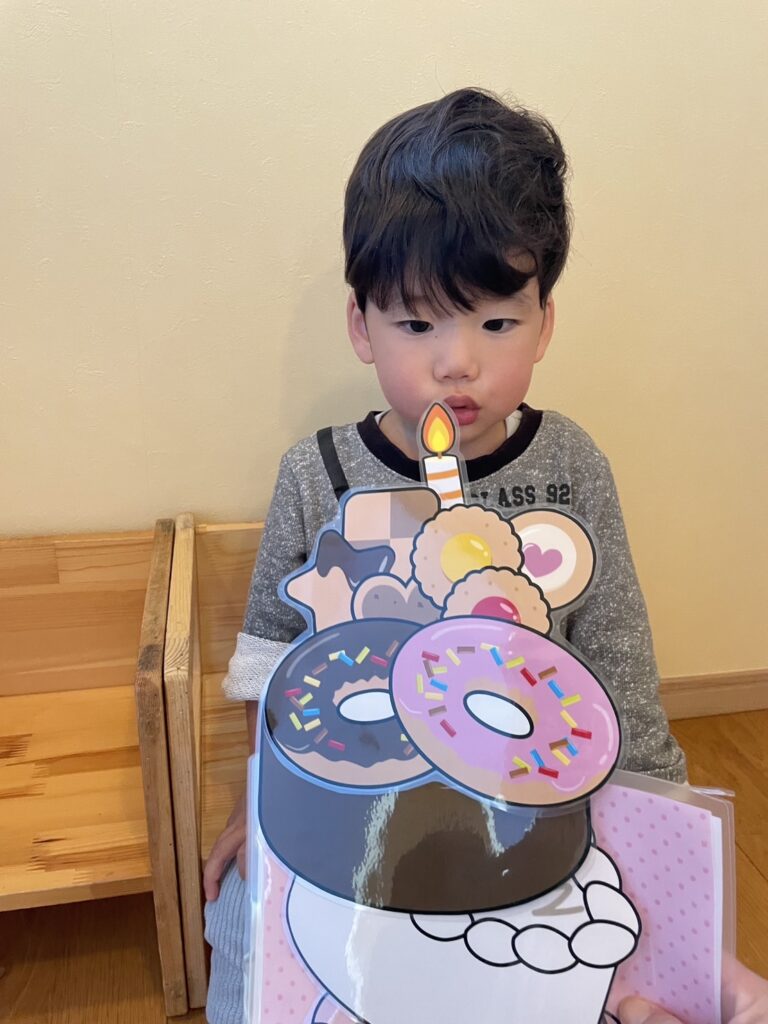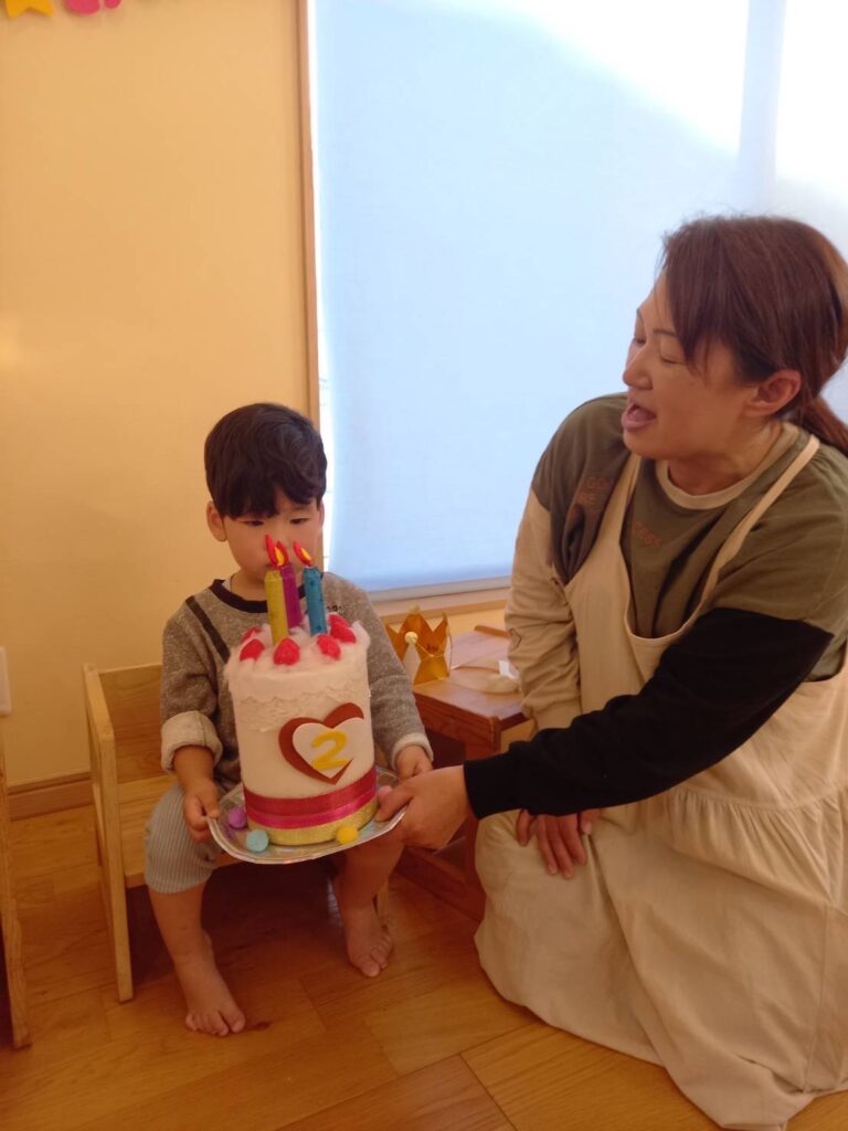 大きなケーキもにこにこでろうそくフーをしていました🕯