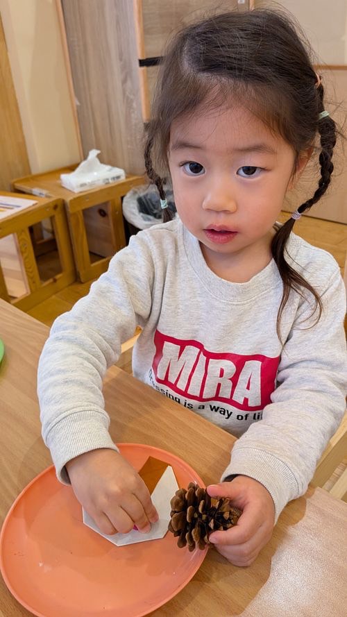お散歩先でどんぐりや松ぼっくりを拾いました♪